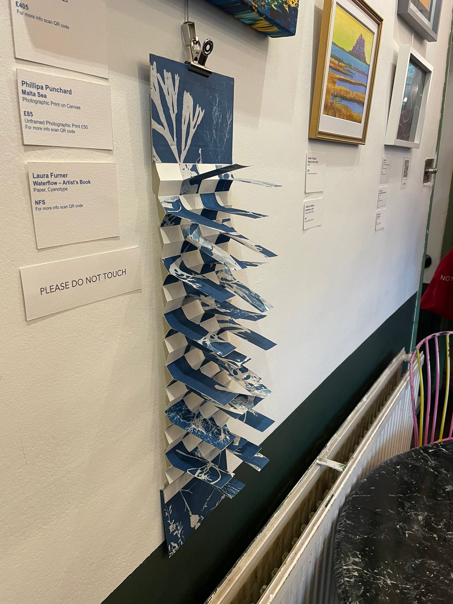 Thought Waterflow was made to be a book that can be touched and interacted with, in this exhibition we chose to display it as a visual piece only, and it was great to work with Virginia to present the book in the best way and ensure visitors could still enjoy the movement and flow of the book itself. It was wonderful to see each little page of the flag book moving and rippling with the movement of the air as a door opened or as people walked past.