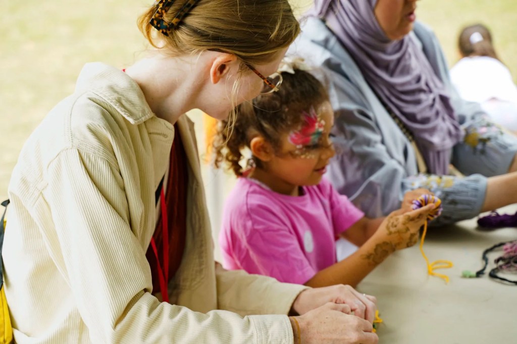 Drop-in workshop for families and adults demonstrating how to use upcycled / discarded yarn from other projects to make new crafts. I supported families and adults across the afternoon to make pom-poms or spiral coasters using discarded yarn and recycled materials. This workshop was part of Jamboree in the Park, a free festival for local communities in Newham, and the workshop was selected by a community panel. The festival was produced by Learning Stages on behalf of Culture within Newham